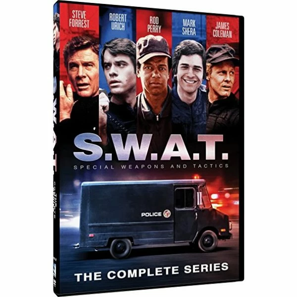 From producer Aaron Spelling (TVs Charlies Angels and Starsky and Hutch) comes one of the toughest, action-packed crime-fighting shows of them all: S.W.A.T.. Spun off from The Rookies and fueled by its signature hit theme song, S.W.A.T. chronicled the covert missions of the LAPD’s Special Weapons and Tactics unit, an elite five-man team tackling situations too dangerous for even the police to handle. The show introduced a new breed of hard-as-nails cops to audiences: Lt. Dan Hondo Harrelson (Steve Forrest, Spies Like Us, Mommie Dearest), Officer Jim Street (Robert Urich, TV’s Vega$, Spencer For Hire), Sgt. Deacon Kay (Rod Perry), Officer Dominic Luca (Mark Shera, TV’s Barnaby Jones), and Officer T.J. McCable (James Coleman).