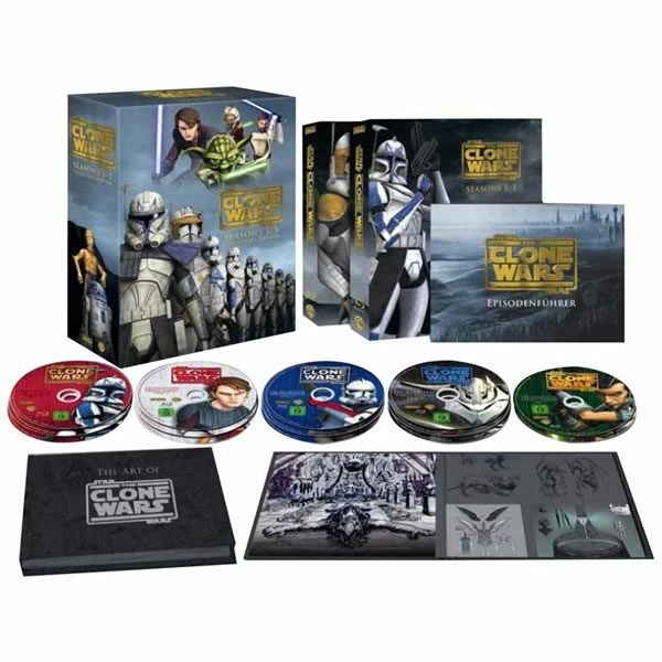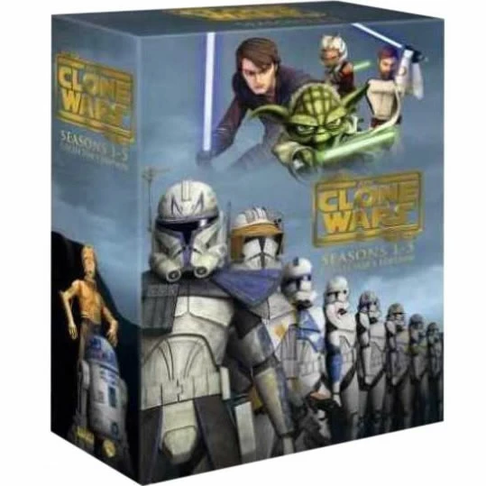 Executive Producer George Lucas and Lucasfilm Animation Present Seasons One through Five of Star Wars?: The Clone Wars? From the heights of peril to the depths of darkness, all the explosive excitement of the Star Wars saga is yours in this Complete Collection of Seasons One through Five. The Republic¡¯s most beloved heroes ¡§C Yoda, Anakin Skywalker, Obi-Wan Kenobi and Ahsoka Tano ¡§C and courageous clone warriors battle the galaxy¡¯s enemies, including vengeful Sith brothers Savage Opress and Darth Maul, Count Dooku, and the notorious Death Watch. Each exciting Season includes the heart-pounding stories of larger-than-life characters presented in spellbinding animation, plus special features to take you further into the captivating Star Wars universe. COLLECTOR¡¯S EDITION CONTAINS: All 108 Episodes of the Hit Series on 19 Discs, for OVER 40 HOURS OF CLONE WARS ACTION!
